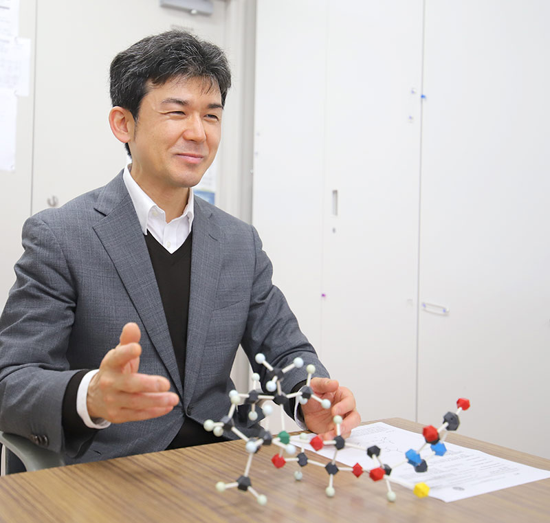 私の専門分野は「有機合成化学」です。“有機化合物をどのようにつくるのか?”というのが私の研究です。