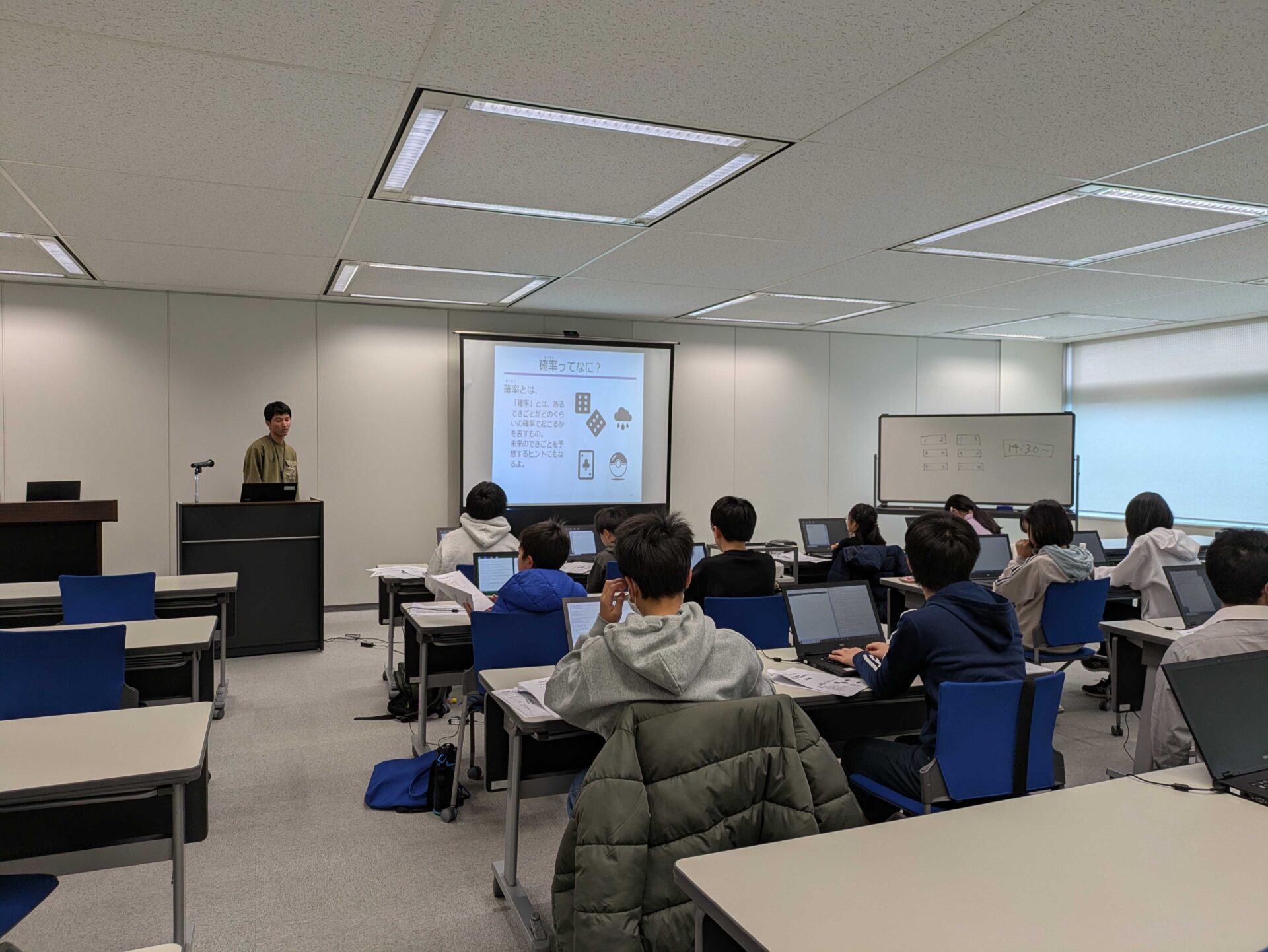 今回はPythonを使用したプログラミングの中で、AIに必須とされる「大量のデータを扱う」体験と、将来的な情報の学びにつながる「確率」の理解をテーマとしました。