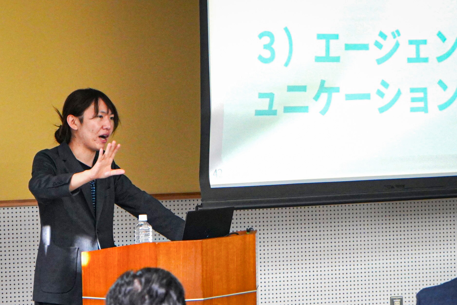 会場には学生・教職員・一般の方 約95名が参加し、オンラインからは65名が参加しました。