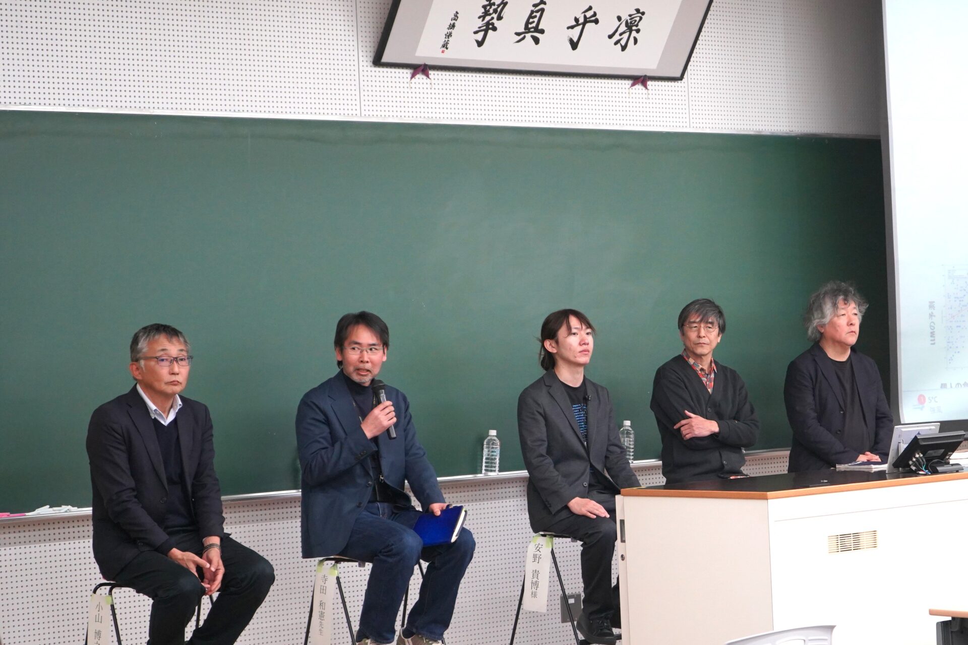 基調講演では、安野氏の東京都知事選の事例をもとにAIと日本社会の未来について御講演いただきました。一見 関係ないと思われる分野におけるAIの可能性や、デジタル技術による新しい価値創造、さらにAIを活用したコミュニケーションの変化について述べられました。 パネルディスカッションでは、安野氏、茂木先生、寺田和憲工学部教授、野村幸弘教育学部教授、小山博之グローカル推進機構長が、松井真弓グローカル推進機構助教の司会の下『グローバルな背景が創る新しい価値とヒトを動かす仕掛けづくりとは―「グローカル人材」×「AIと日本社会」―』について各パネリストの海外経験を踏まえて、それぞれの視点から有意義な議論が展開されました。