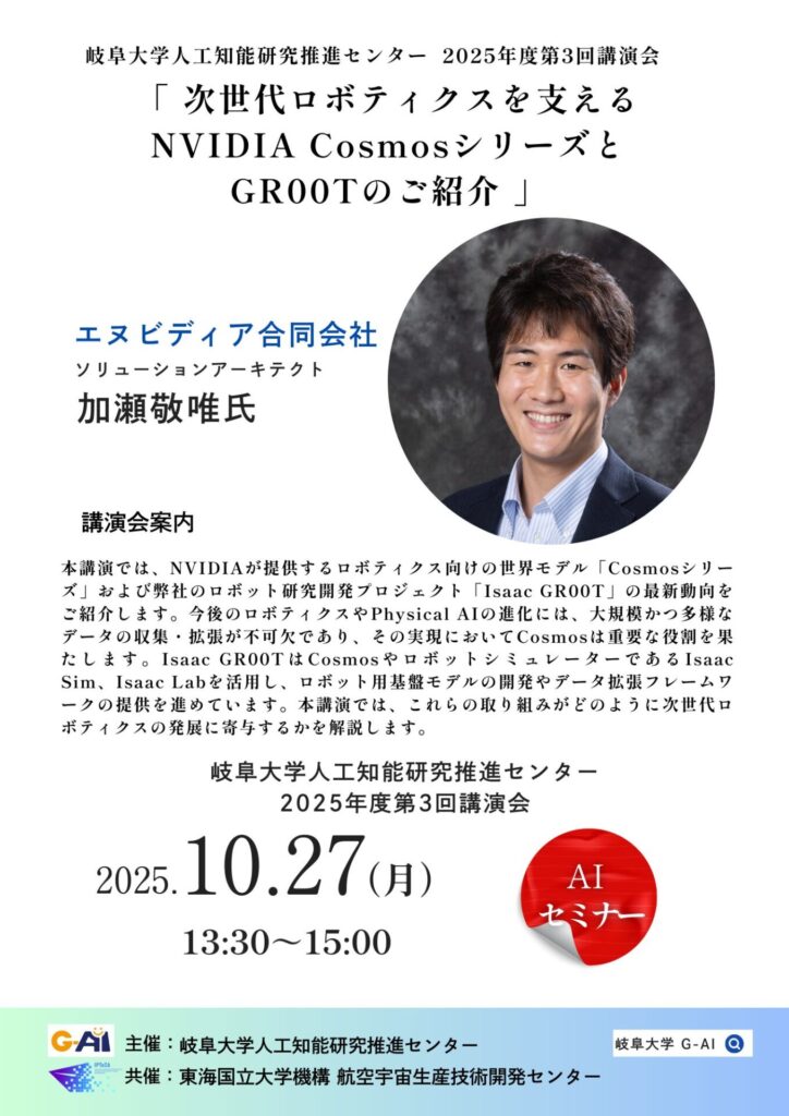 岐阜大学人工知能研究推進センター 2025年度第3回講演会のお知らせ