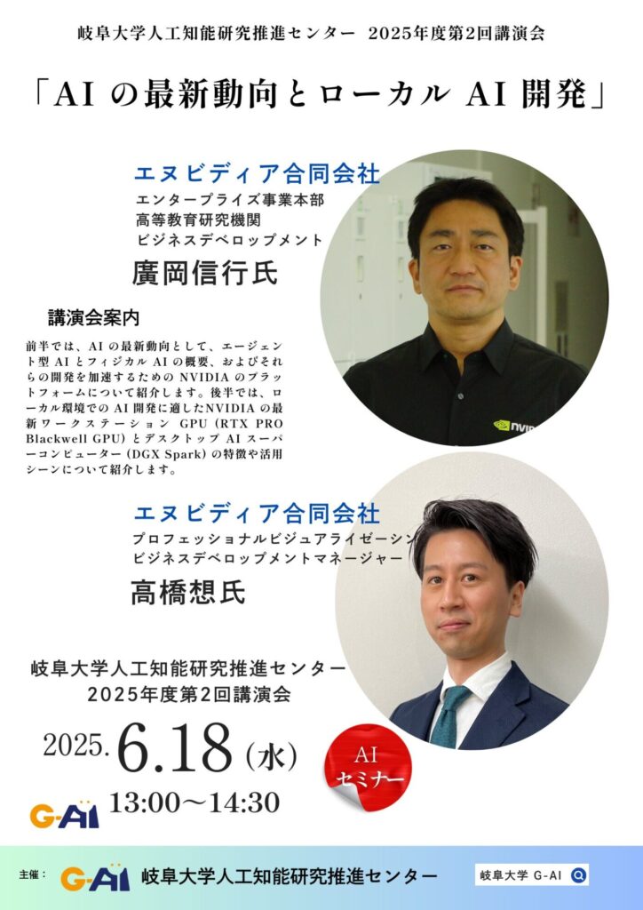 岐阜大学人工知能研究推進センター 2025年度第2回講演会のお知らせ