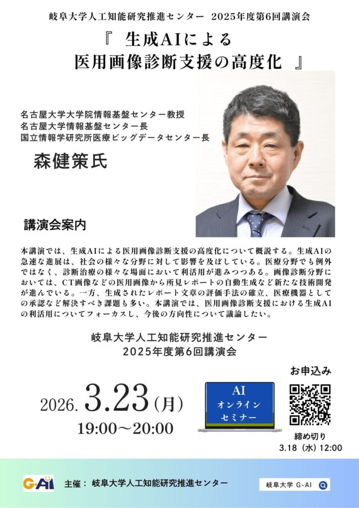 岐阜大学人工知能研究推進センター 2025年度第6回講演会のお知らせ(申し込み期間延長)